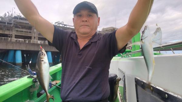 今日は酸いも甘いも知ったる百戦錬磨の戦闘員も数名ご乗船。前半は近場にて船内ポツポツ! 食いつき鈍くなり後半は久々に富岡方面を廻ってみました、こちらでもコマセ効いてくると顔出しから徐々にアタリ繋がってくれました! 伸び悩みのお客さま出てしまいましたが10名中7名が50匹オーバーと全体としては好調! まだ比率は少しだけどここのとこ場所により日により季節商品のジンタ(豆アジ)がチラホラ、海は秋に向かっているのですかね〜。